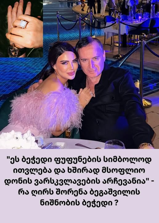 ფოტოზე ჩანს, რომ ნიშნობის ბეჭდად შორენამ ულამაზესი ბრილიანტით გაფორმებული სამკაული მიიღო. ბეჭედი ძალიან ჰგავს Graff Diamonds-ის ერთ-ერთ ყველაზე ცნობილ მოდელს, Graff Promise.